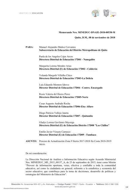 Direcciones Distritales De Educacion 2018