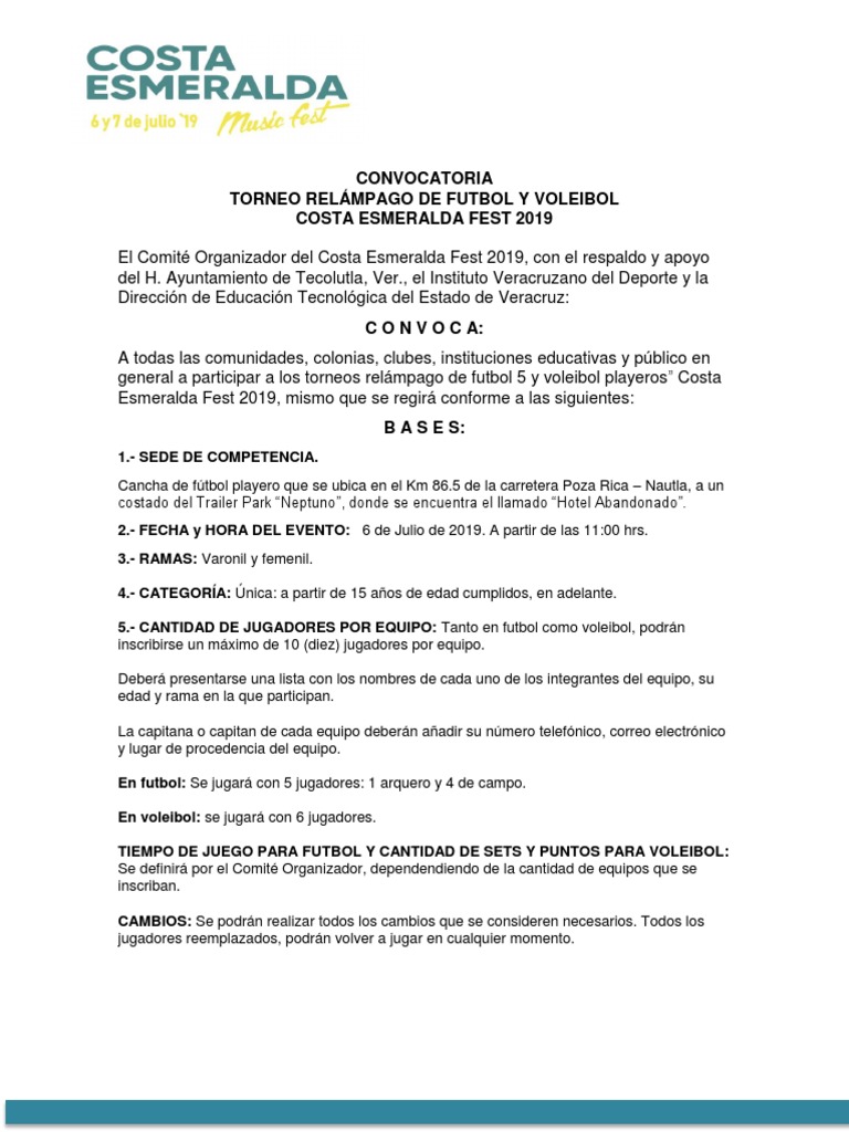 Ejemplo De Convocatoria Deportiva Asociacion De Futbol