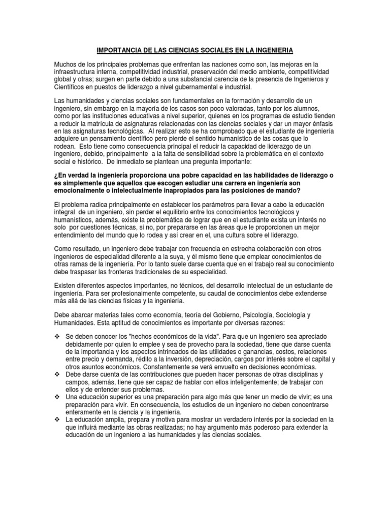 Importancia De Las Ciencias Sociales En La Ingenieria Copia